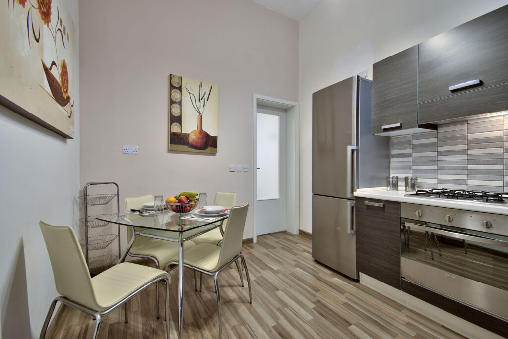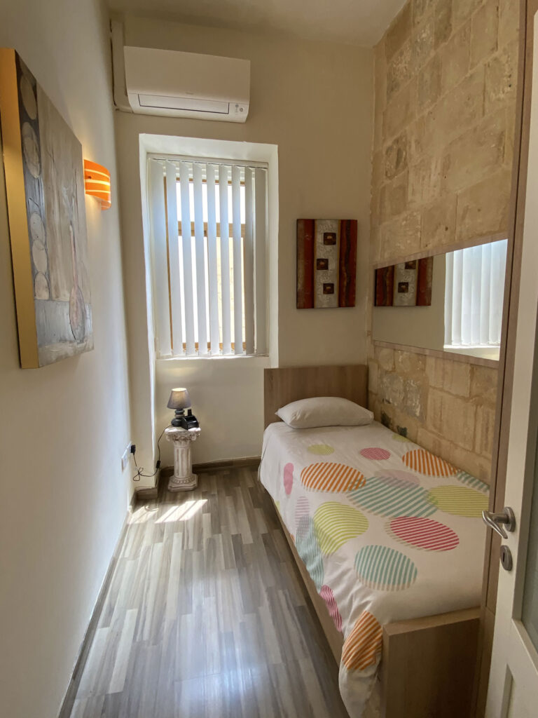 This is another bright 100 square metres apartment with traditional features such as high ceilings and a Maltese timber balcony overlooking St. Paul’s Street. Recently renovated, this apartment is equipped with all the necessary facilities that our esteemed guests could need. It’s also accessible to everyone since it’s equipped with an elevator. Furthermore, one can relax and unwind in the communal rooftop garden equipped with sunloungers, and outdoor furniture. One cannot not mention the exceptional view of the Grand Harbour, one of the most beautiful ones in Europe. Set in the cultural city of Valletta, one can find everything he needs close-by. Whether shopping from various shops, having a nice stroll through this vibrant capital city or having a chat in one of the local cafeterias or wine-bars one can surely spend a wonderful day. Other major attractions close by are the Upper Barrakka Gardens, St. John’s Cathedral and the Auberge de Castille. There are also numerous delicious local restaurants which will definitely make you feel at home.